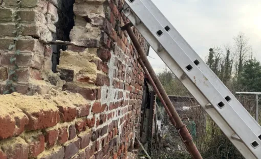 Dans le cadre de ce chantier, la première étape a consisté au démontage manuel d'un mur…